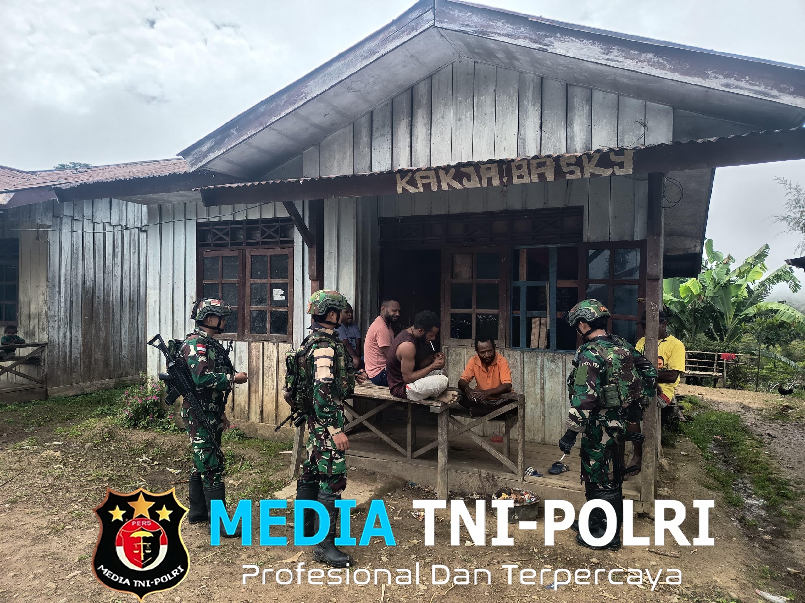 OK AOM – PEGUNUNGAN BINTANG // MEDIATNI-POLRI.COM / Dalam rangka memperkuat kemanunggalan TNI dengan rakyat, personel Pos Satgas Pamtas RI–PNG Yonif 751/Vira Jaya Sakti (VJS) melaksanakan kegiatan anjangsana ke masyarakat Dusun 2, Kampung Bulangkop, Distrik Ok Aom. (Kamis, 04/09/2025)