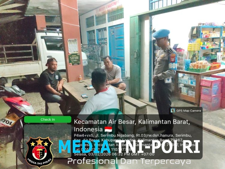 LANDAK // MEDIATNI-POLRI.COM / Polsek Air Besar ~ Polres Landak ~ Polda Kalbar ~ Dalam rangka menjaga situasi kamtibmas tetap aman dan kondusif, jajaran Kepolisian bersama warga melaksanakan patroli malam yang berlangsung penuh keakraban.