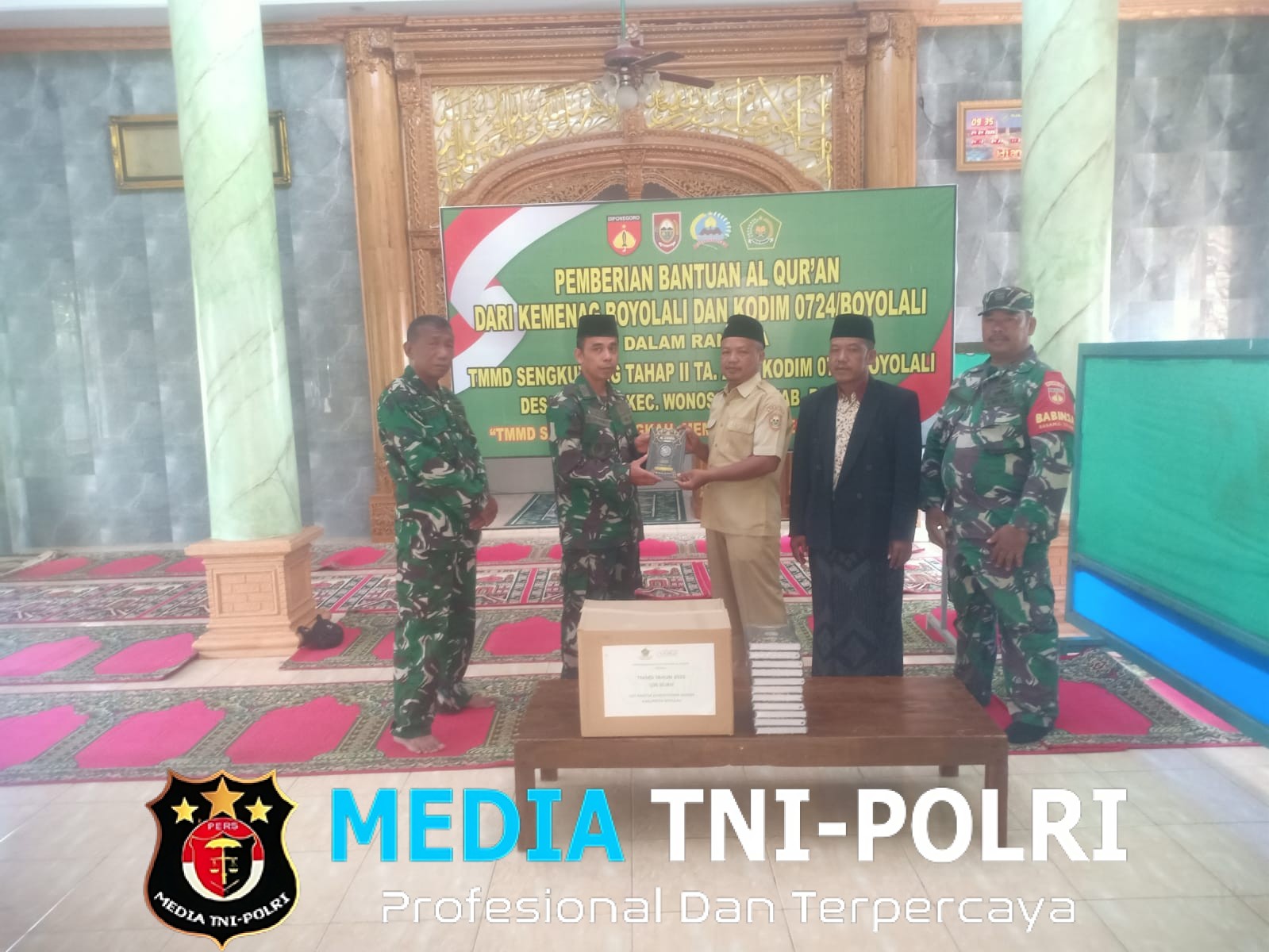 BOYOLALI // MEDIATNI-POLRI.COM / Wujud kepedulian terhadap kehidupan religius masyarakat kembali ditunjukkan melalui program TMMD Sengkuyung Tahap II Tahun 2026. Satgas TMMD Kodim 0724/Boyolali menggandeng Kementerian Agama Kabupaten Boyolali menyalurkan bantuan Al-Qur’an kepada Masjid Jami Darusallam yang berada di Dukuh Ngrembes, Desa Kauman, Kecamatan Wonosegoro, Jumat (24/04/2026).