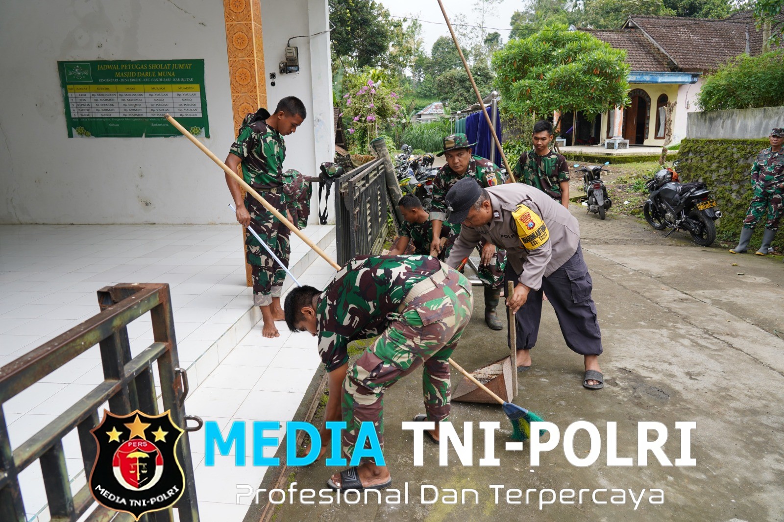 BLITAR // MEDIATNI-POLRI.COM / Menjelang datangnya bulan suci Ramadhan, Satgas TMMD Ke 127 bersama masyarakat melaksanakan kerja bakti membersihkan Masjid Darul Muna sebagai bentuk kepedulian terhadap kebersihan dan kenyamanan tempat ibadah.