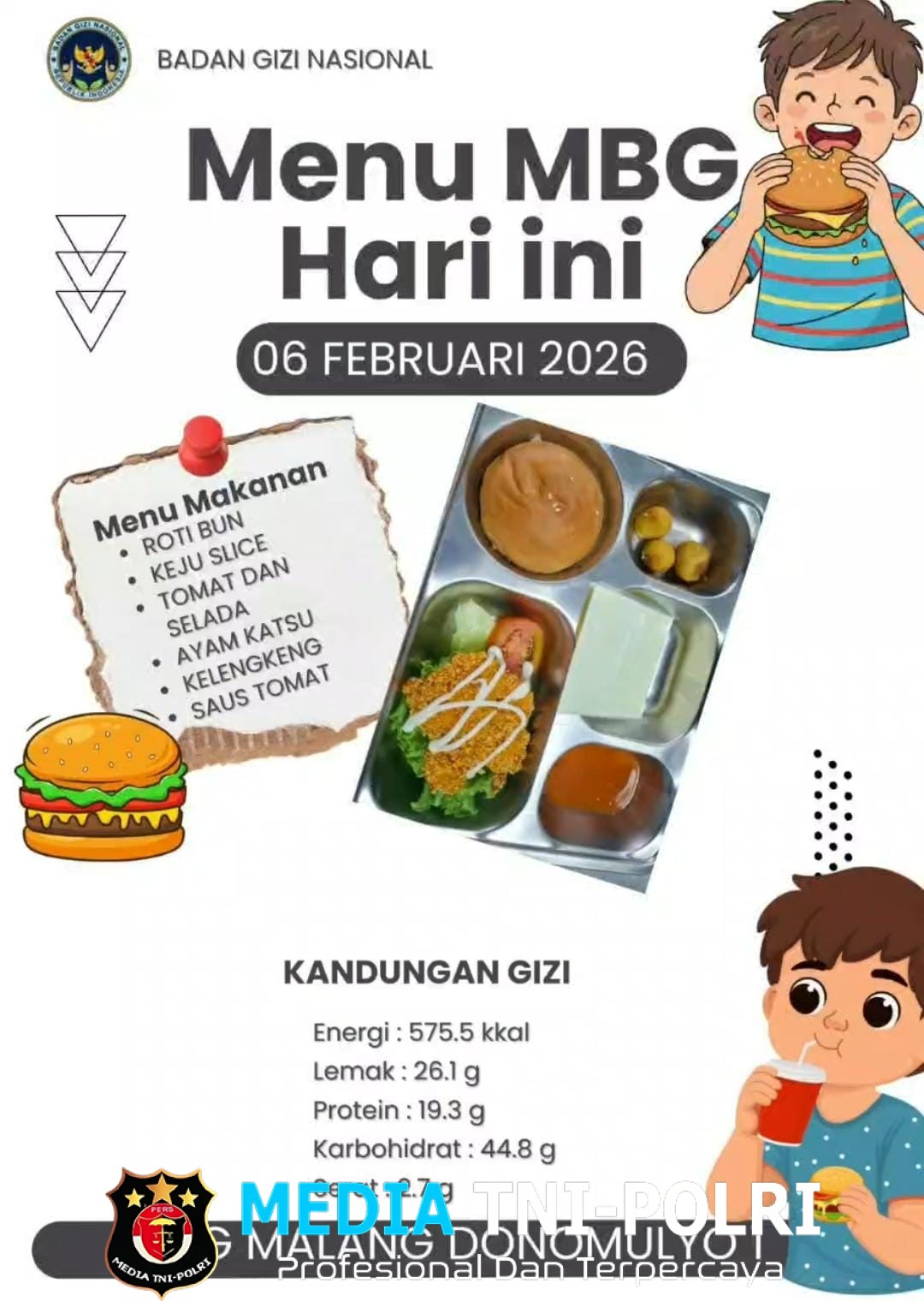 Pada Jumat, 06 Februari 2026, suasana sekolah tampak ceria saat para pelajar menikmati sajian menu MBG yang disiapkan oleh SPPG Malang Donomulyo 1 di bawah koordinasi Badan Gizi Nasional.