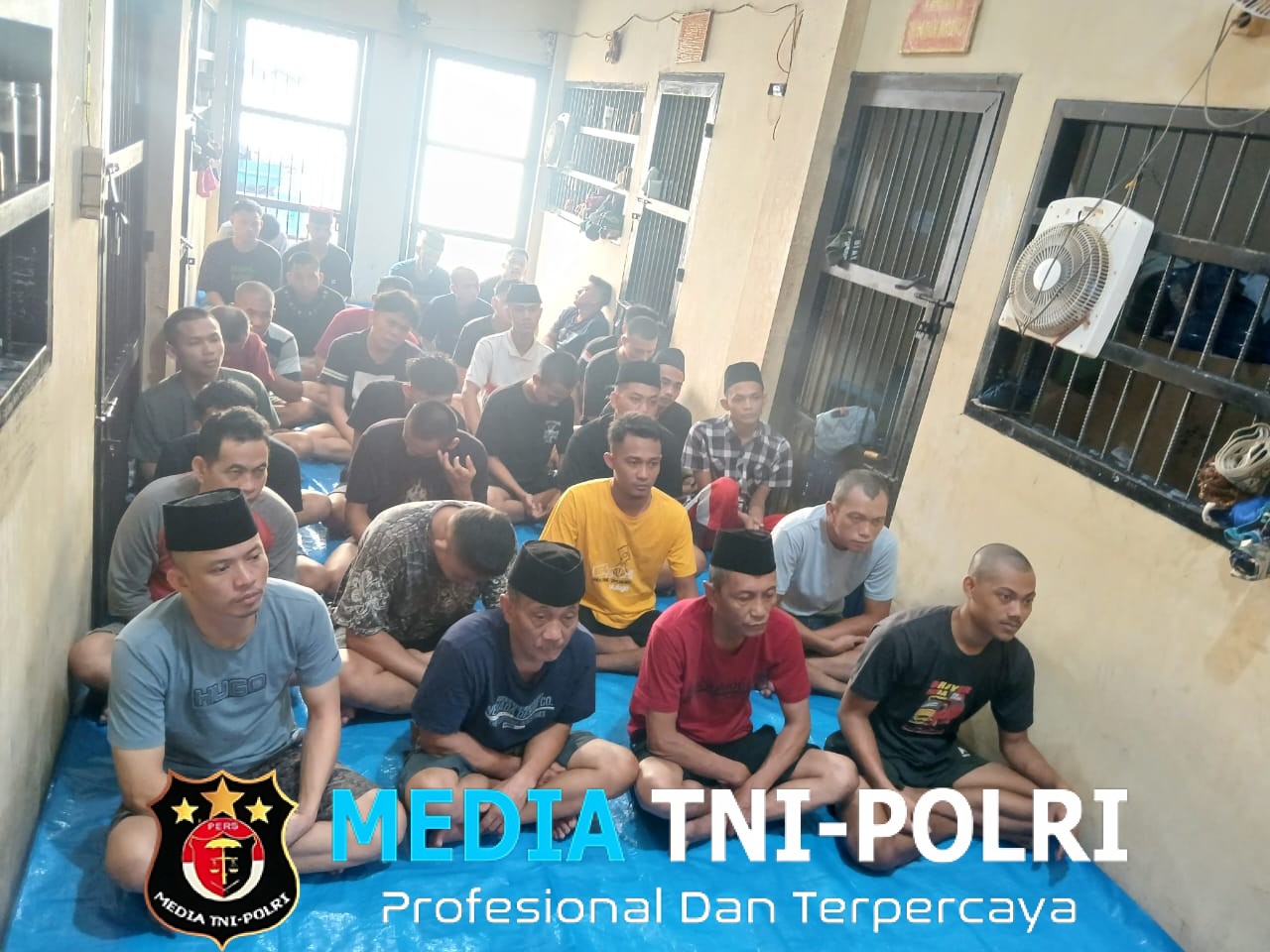 PRINGSEWU // MEDIATNI-POLRI.COM / Suasana berbeda terasa di Rutan Polres Pringsewu pada Jumat (25/7/2025) pagi. Puluhan tahanan tampak khusyuk mengikuti kegiatan pembinaan rohani dan mental (binrohtal) yang digelar rutin setiap pekan oleh jajaran kepolisian.