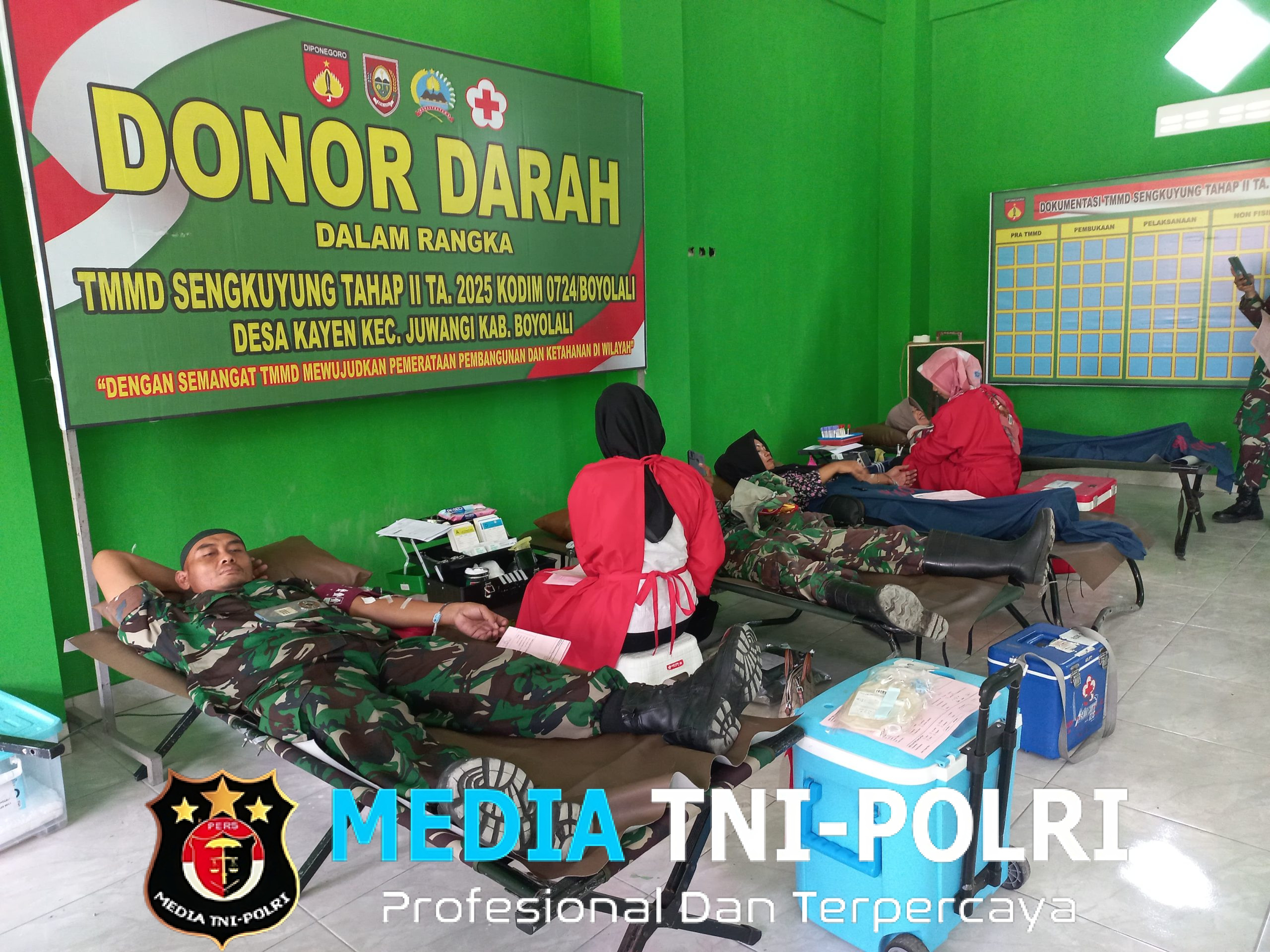 Hari ini Satgas TMMD bersama berbagai pihak menggelar aksi donor darah yang dipusatkan di rumah Bapak Anung Suteja dukuh Bajangan Desa Kayen Kecamatan Kemusi Kabupaten Boyolali. Rabu ( 21/05/25)