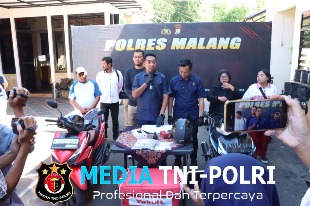 MALANG // MEDIATNI-POLRI.COM / Kepolisian Resor Malang, Polda Jatim, berhasil mengungkap kasus pencurian sepeda motor yang menimpa seorang kurir Yakult di Kepanjen,