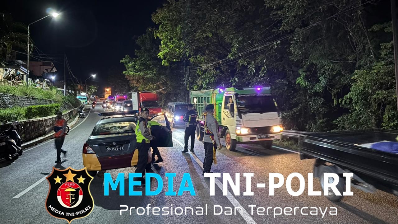Petugas kepolisian dengan sigap melakukan pengamanan TKP, mengatur lalu lintas secara manual, serta memastikan pengguna jalan dapat melintas dengan aman.