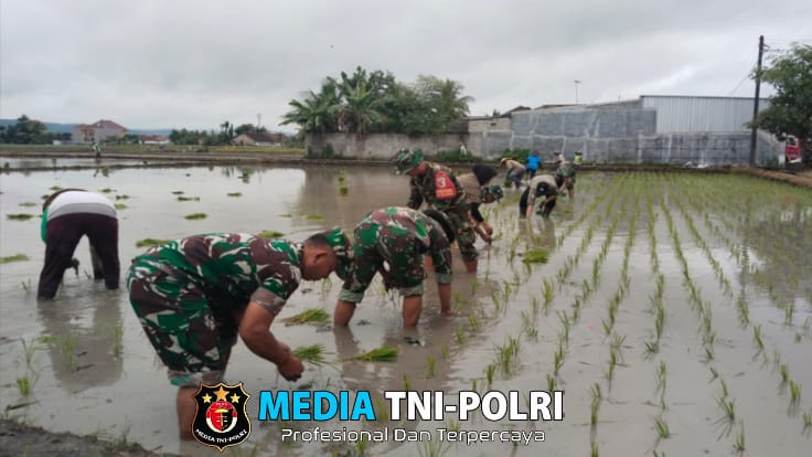 BLITAR // MEDIATNI-POLRI.COM / Dalam upaya mencapai target swasembada pangan Koramil 0808/09 Sutojayan Kodim 0808/Blitar bersama Kelompok tani (Poktan) Tani Alam melaksanakan penanaman padi bersama yang di hadiri oleh Perwira Penghubung (Pabung) Kodim 0808/Blitar Mayor Cke Supriono,