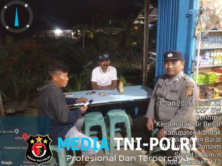 LANDAK // MEDIATNI-POLRI.COM / Polsek Air Besar ~ Polres Landak ~ Polda Kalbar ~ Dalam upaya menciptakan situasi kamtibmas yang aman dan kondusif, jajaran Kepolisian terus meningkatkan kegiatan patroli malam sekaligus menyampaikan imbauan langsung kepada masyarakat. Kamis (1/1/2026),
