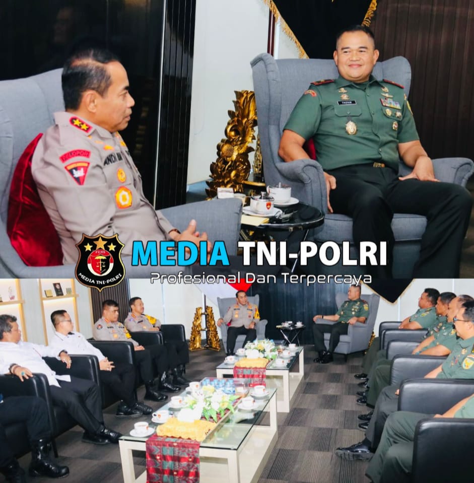PALEMBANG // MEDIATNI-POLRI.COM / Kapolda Sumsel Irjen Andi Rian R Djajadi mendapat kejutan dengan kunjungan audiensi Komandan Korem 044/Garuda Dempo Brigjen TNI Muhammad Tohir S.sos MM bersama perwira staffnya di Mapolda pada Senin sore (7/10/2024).