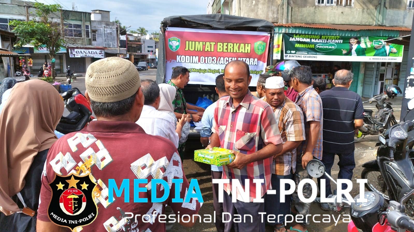 ACEH UTARA // MEDIATNI-POLRI.COM / Koramil 06/Smd melaksanakan kegiatan Jum’at Berkah dengan berbagi kepada masyarakat di wilayah Kecamatan Samudera, Kabupaten Aceh Utara, Jumat (17/10/2025).
