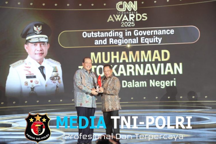 JAKARTA // MEDIATNI-POLRI.COM / Menteri Dalam Negeri Tito Karnavian meraih penghargaan Outstanding in Governance and Regional Equity dalam ajang bergengsi CNN Indonesia Awards 2025 yang digelar di Ritz Carlton Mega Kuningan, Jakarta, Jumat (31/10/2025).