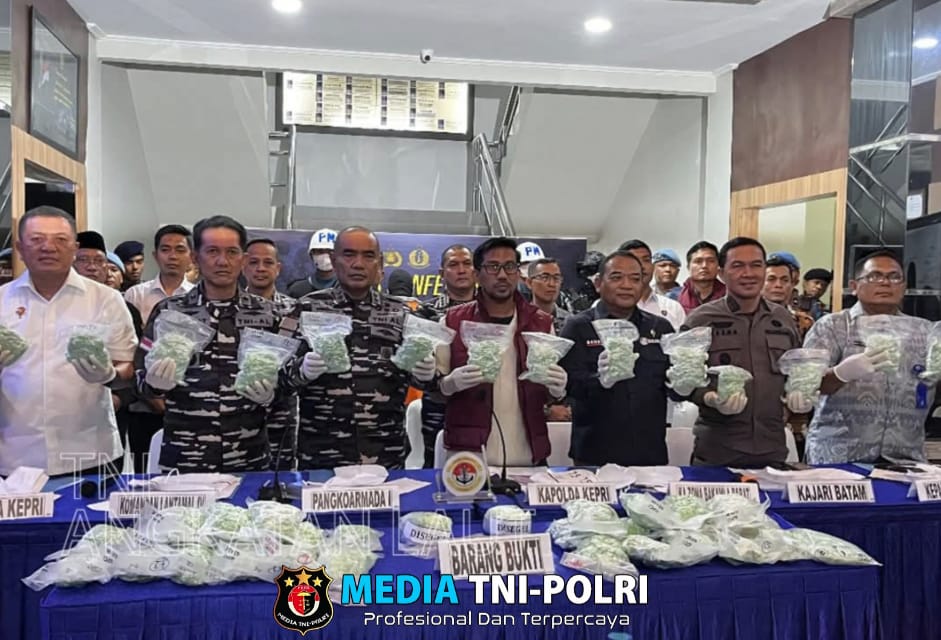 JAKARTA // MEDIATNI-POLRI.COM / 20 Maret 2025 ~ TNI AL menegaskan komitmen untuk memberantas peredaran narkoba di jalur laut perbatasan Indonesia. Sebagai bukti nyata upaya memberantas peredaran narkoba, TNI AL bersinergi dengan Polda Kepri, Kejaksaan Tinggi Kepri, BNN Provinsi Kepri, Kejaksan Negeri Batam, Kejaksan Negeri Karimun, Pengadilan Negeri Batam dan BPOM Batam