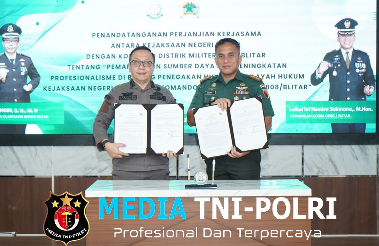 BLITAR // MEDIATNI-POLRI.COM / Dalam rangka memperkuat sinergi antarinstansi di bidang penegakan hukum, Kejaksaan Negeri Blitar dan Kodim 0808/Blitar melaksanakan penandatanganan perjanjian kerjasama (PKS) pada Kamis (31/7/2025) bertempat di Aula Kantor Kejaksaan Negeri Blitar, Jl. Sudanco Supriyadi, Kelurahan Bendogerit, Kecamatan Sananwetan, Kota Blitar. Kegiatan ini diikuti oleh sekitar 50 peserta dari kedua institusi.