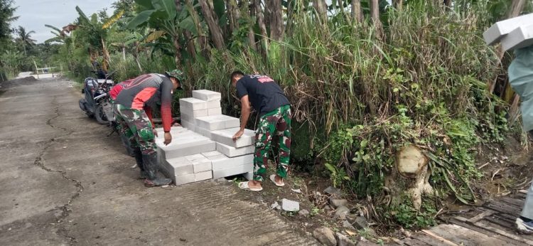 Memberi penyuluhan jago, termasuk memanggul semen maupun bata herbel yang akan digunakan untuk merehab rumah warga sasaran TMMD juga tidak membuat mereka kikuk, (7/3/2025)