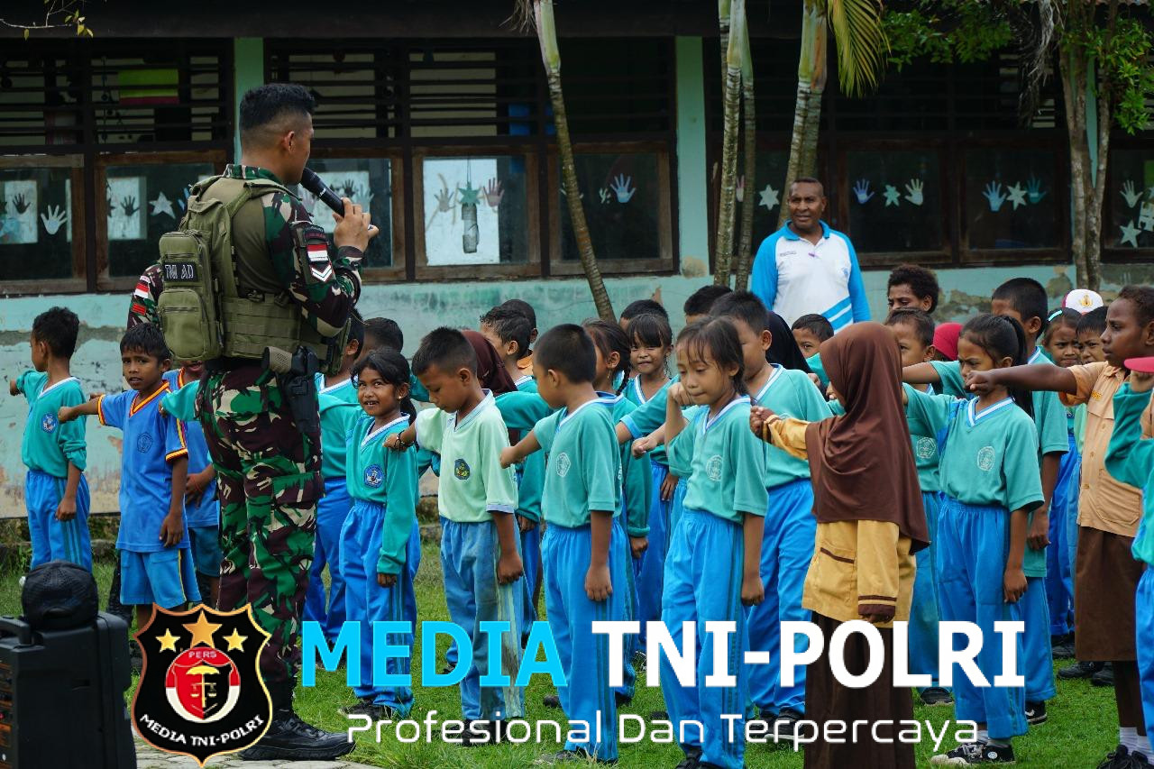 KEEROM // MEDIATNI-POLRI.COM / Suasana semangat dan ceria menyelimuti halaman SD Inpres Wonorejo, Distrik Mannem, Kabupaten Keerom, Papua, pada Jumat (23/05/2025).