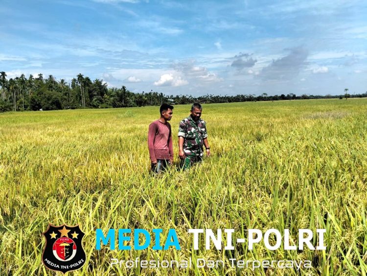 ACEH UTARA // MEDIATNI-POLRI.COM / Babinsa Koramil 20/Cot Girek, Sertu Heriswandi, turun langsung ke sawah melakukan pengecekan tanaman padi bersama petani di Desa Matang Teungoh, Kecamatan Cot Girek, Kabupaten Aceh Utara, Kamis (2/10/2025). Kegiatan berlangsung dalam suasana aman dan lancar.