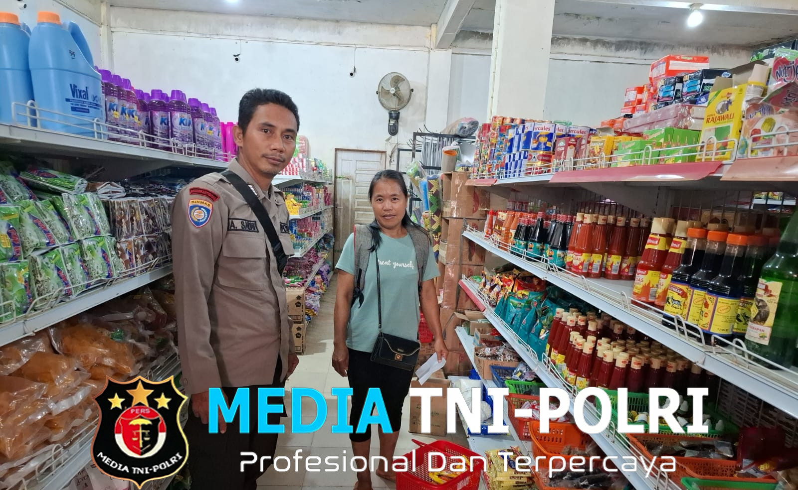 Personel Polsek Kuala Behe Bripka melaksanakan patroli dialogis ke pertokoan, di Desa Kuala Behe, Kecamatan Kuala Behe, Kamis (22/05/2025).