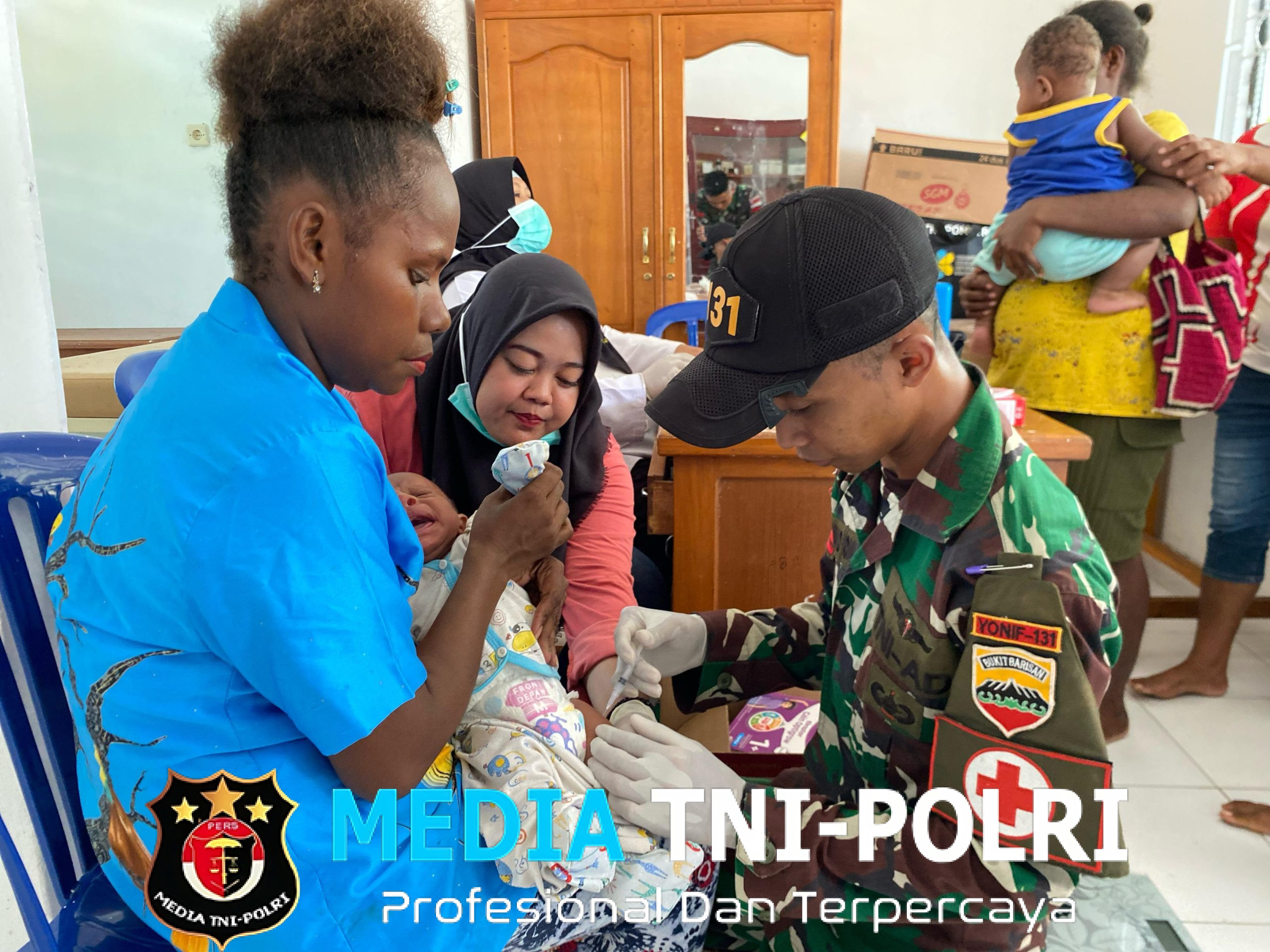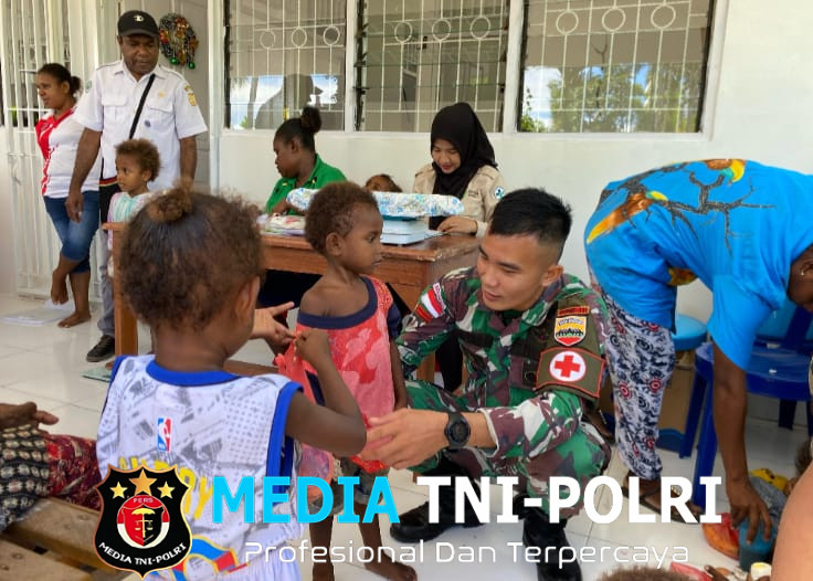 JAYAPURA // MEDIATNI-POLRI.COM / Dalam upaya meningkatkan derajat kesehatan anak-anak di wilayah perbatasan, Satgas Yonif 131/Brajasakti melalui Pos Mosso bekerja sama dengan Puskesmas Model menggelar kegiatan pelayanan Posyandu di Kampung Mosso, Distrik Muara Tami, Papua, pada Jumat (18/04/2025).