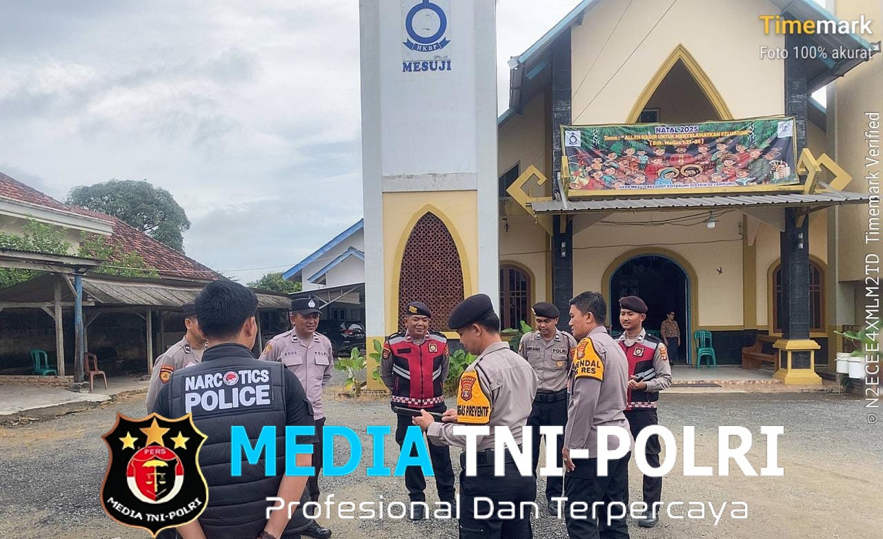 MESUJI // MEDIATNI-POLRI.COM / Dalam memberikan rasa aman dan nyaman serta kekhusu’an umat Kristiani dalam beribadah merayakan Nataru, Jajaran Polres Mesuji melalui Sub Satgas Preemtif melaksanakan pengamanan di gereja Santo Andreas dan Gereja HKBP Desa Simpang pematang Kecamatan Simpang Pematang Kabupaten Mesuji, Minggu (28/12/2025)