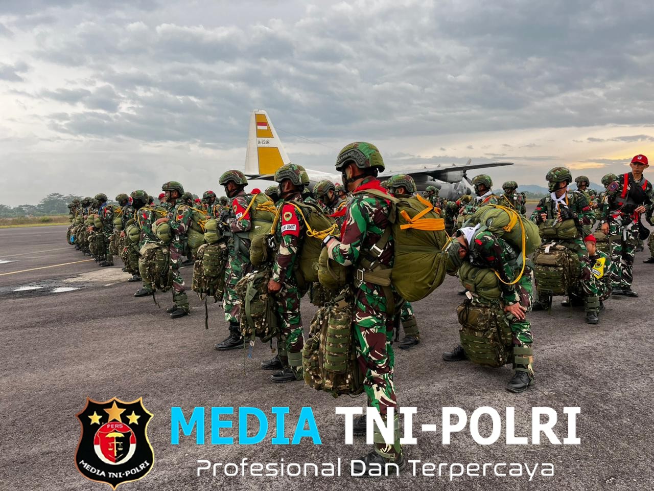 BANGKA BELITUNG // MEDIATNI-POLRI.COM / Pendiv2- Prajurit Yonif 501 Kostrad tiba di Bandara Depati Amir, Bangka Belitung menggunakan pesawat C-130 Hercules, untuk melaksanakan Latihan Gabungan TNI.