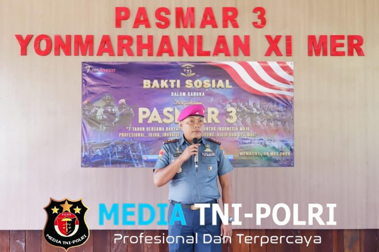 MERAUKE // MEDIATNI-POLRI.COM / Dalam rangka memperingati Hari Ulang Tahun (HUT) Ke-7 Pasmar 3, Batalyon Marinir Pertahan Pangkalan (Yonmarhanlan) Xl Merauke menggelar kegiatan Bakti Sosial (Baksos) di Kesatrian Yonmarhanlan Xl Merauke, Jl. Diko l Trans Irian Wasur Kel.Rimba jaya, Distrik Merauke, Kab. Merauke, Provinsi Papua Selatan. Selasa (20/05/2025).